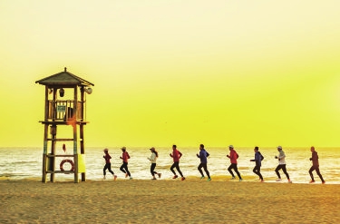 晨光微露,大海边的绿道上点缀着成群骑行的身影。不远处的静水区,体验赛艇、皮划艇的青少年们乘风逐浪,与身后的碧海蓝天交汇成一幅动人的画卷;大大小小的公园绿地中满是广场舞动感的音乐,数十公里外的乡镇社区里,一场场“村BA”带来的激情点亮盛夏的夜空……在日照,运动就是一种生活方式,每个人都可以在这里打开关于运动的无限可能。