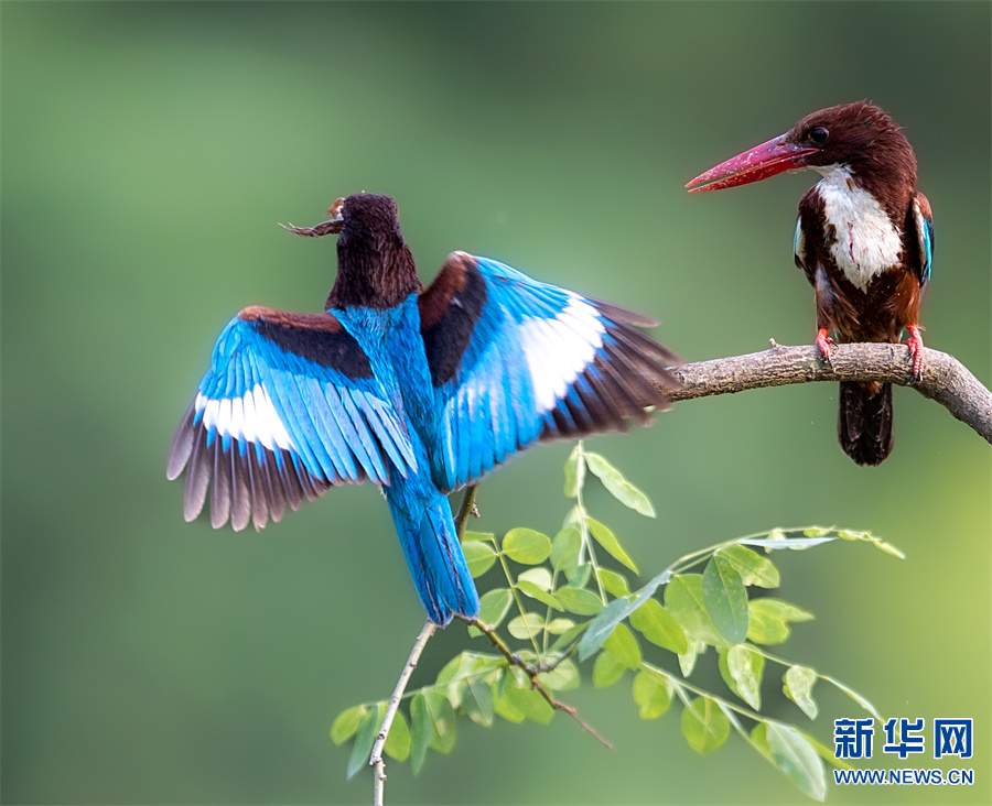 河南省信阳市新县位于南北气候过渡带,地跨长江、淮河两大流域,植被覆盖率达95%,森林覆盖率达76.7%。得天独厚的自然生态环境,吸引了蓝喉蜂虎、蓝翡翠、戴胜等众多鸟类在这里“安营扎寨”,绘出一幅生动和谐的自然画卷。新华网发(阚敦传 摄)
