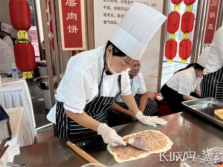 比赛现场,厨师们身着整洁的厨师服,和面、调馅、擀皮、上馅、包捏成型、加热至成熟,每一道工序都专业而富有激情。热气腾腾的肉饼香味四溢,色泽黄褐透亮,外皮油酥焦脆,让在场观众垂涎欲滴。