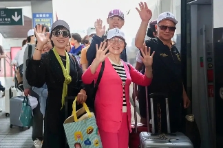 走到安检口附近,陆柏荪夫妇便看到了窦天怡挥舞的小旗子。“我跟着小窦出去玩过好多次了。”陆柏荪说,“以前我一到高铁站就晕头转向。搭乘银发旅游列车,有小窦全程带着,还可以走快速通道,我们不用急着找座位、放行李,省心多了。”
