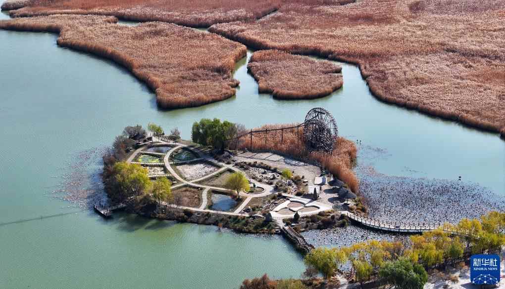 立冬节气过后,位于宁夏银川市兴庆区的鸣翠湖国家湿地公园,金黄色的芦苇随风飘荡,各色林木五彩斑斓,构成独特的初冬湿地景观。