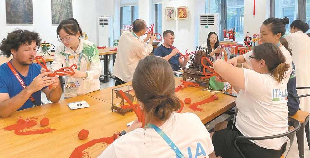 绳编、剪纸、蜀绣、皮影戏、书法……7月30日,记者走进成都大运会大运村互动体验中心看到,数十种既富有中国韵味又饱含四川特色的文化体验项目,让世界各地的嘉宾在这里“沉浸式”体验中华优秀传统文化。