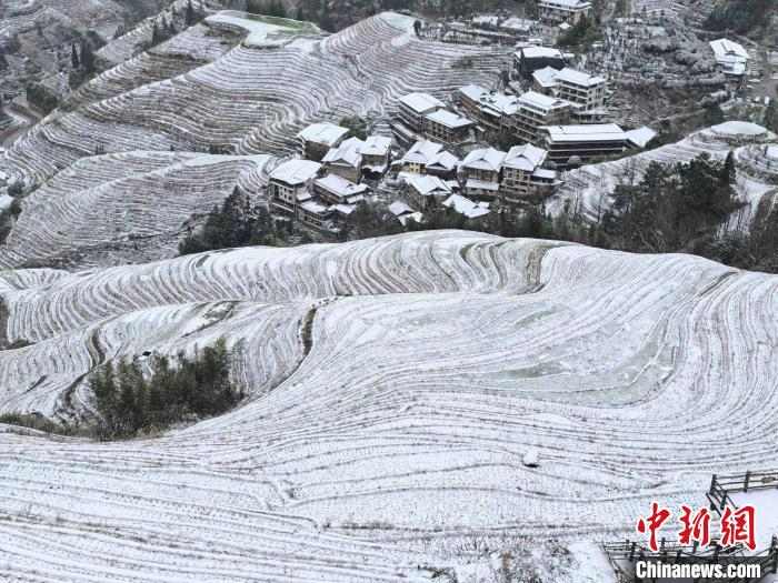 1月22日,广西龙胜各族自治县龙脊梯田雪景。