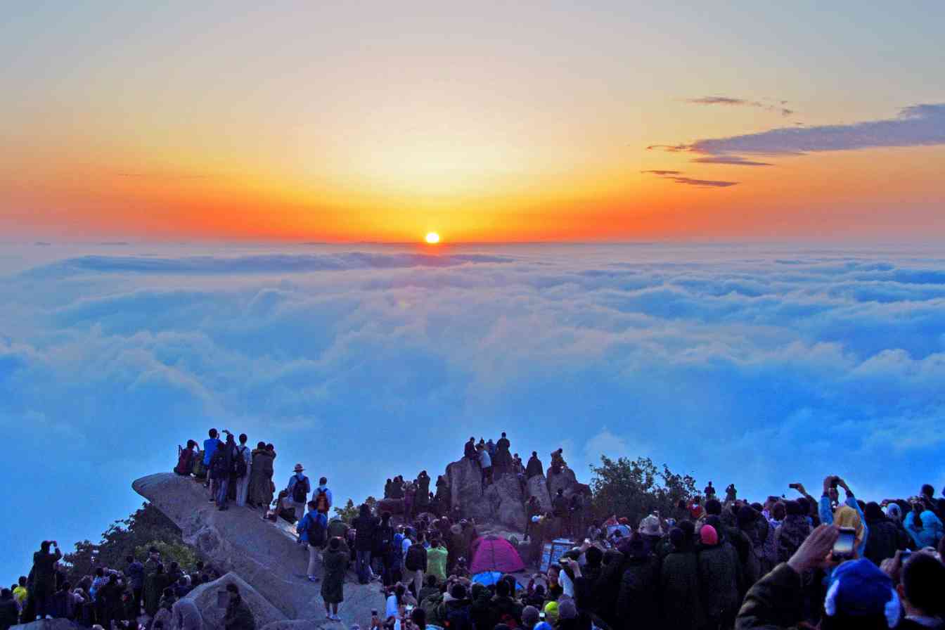 游客泰山看日出 记者 陈晨 摄