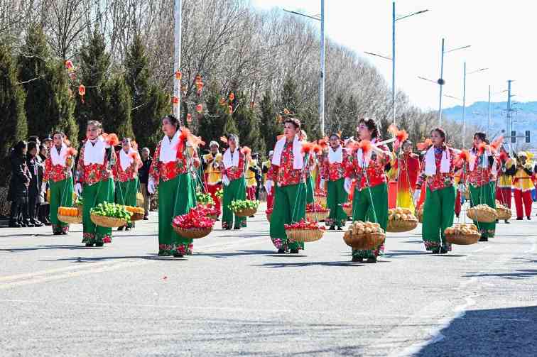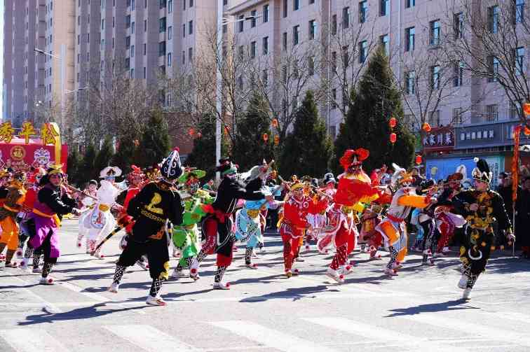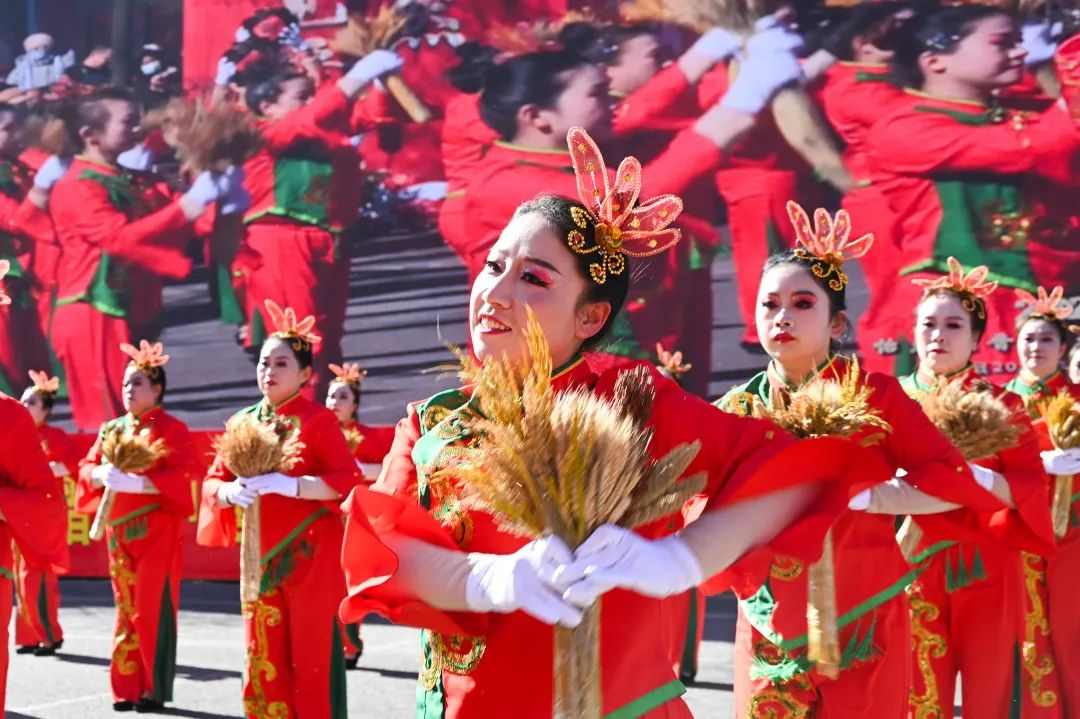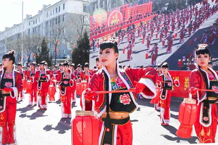 上午十点整,在喧天的锣鼓声中,文艺游行活动正式拉开帷幕。来自全县各乡镇(城区)的9路队伍,与各系统的11路队伍从太和路出发,途经永和路,在北内环开展游行活动,为沿路的群众送上新春祝福。演员们精心打扮、身着鲜艳的服饰,伴着欢快的鼓点,一路欢歌而来。舞蹈、歌曲、情景演绎、英歌舞等传统社火项目轮番上演,每一支队伍都身着节日盛装,以饱满的精神状态投入到表演中。锣鼓阵阵、狮舞翩跹,欢快的节奏、优美的舞姿,原汁原味的表演瞬间把喜气洋洋的气氛传递给了在场所有的观众,人人拍手叫好,现场一派热闹景象。