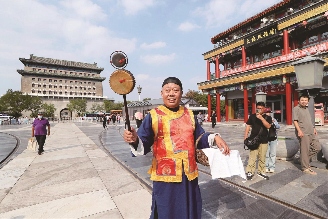 前门大街上的京味吆喝表演