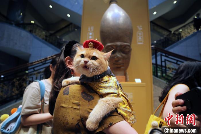 7月27日晚,上海博物馆迎来首场博物馆“奇喵夜”活动。200只精心打扮的宠物猫在主人的带领下齐聚“金字塔之巅:古埃及文明大展”。 中新社记者 张亨伟 摄