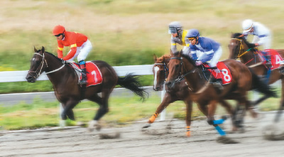 伊犁哈萨克自治州昭苏县举行,吸引不少游客前来观赛。图为骑手们在比赛中挥舞马鞭,骏马疾驰。