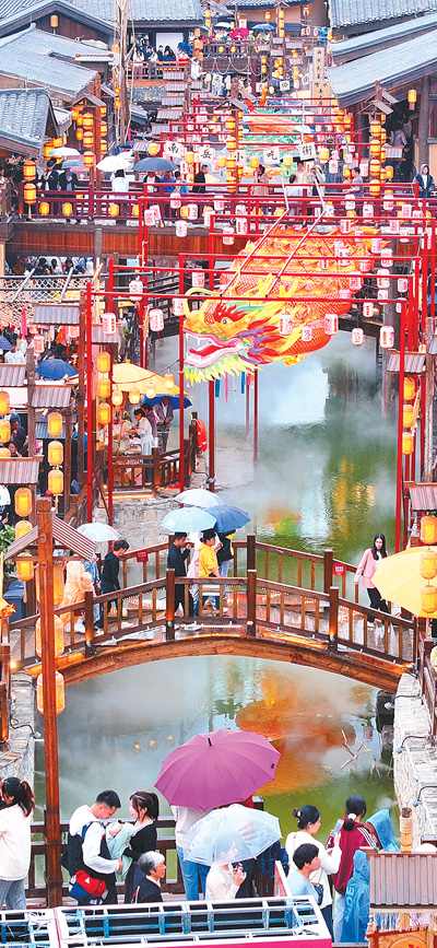 龙门浩老街上,几名外地游客沿着青石台阶漫步至老街最高点——揽月台,远眺渝中半岛。这条位于重庆市南岸区南滨路中段的老街,面朝长江,背依南山,开埠文化、巴渝文化等文化底蕴深厚。近年来,经过保护与修缮,这里不仅恢复了历史风貌,还增添了现代时尚气息。古色古香的街道两旁,新潮的商铺、餐馆和咖啡馆为市民游客休闲购物提供便利和全新体验。“感受时光交错的美妙”,成为这里的一大魅力。数据显示,自发展全域旅游以来,龙门浩老街所在的龙门浩街道已接待游客近4000万人次,实现旅游收入276.8亿元,龙门浩老街还成功创建第二批国家级夜间文旅消费聚集区。