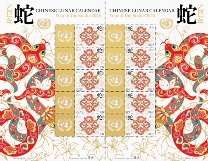 这是联合国邮政管理局1月17日在纽约发行的蛇年生肖个性化邮票版张。(联合国邮政管理局供图)