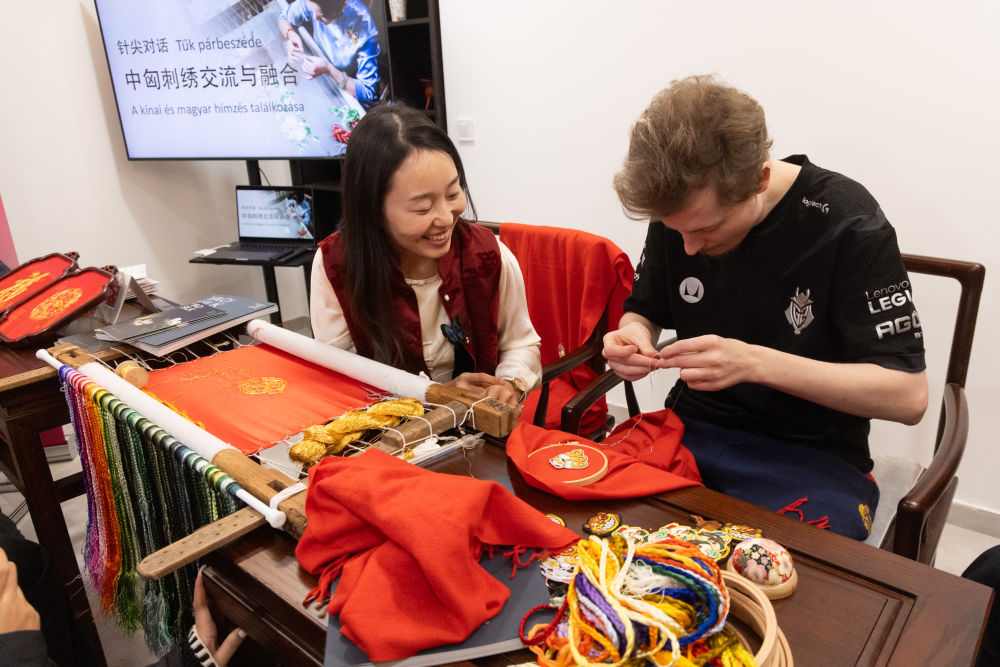 1月17日,在匈牙利布达佩斯,一名男子在2025“欢乐春节”活动上体验苏绣。(弗尔季·奥蒂洛摄)