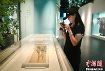 7月16日,四川成都,参观者拍摄苏孙瞻画作《青绿山水卷》。当日,“青·韵——文物里的中国传统色彩美学”特展在成都金沙遗址博物馆启幕。此次展览汇聚了故宫博物院、湖南博物院等20余家文博机构的200余件/组青色系文物,尽显文物里的青色之美。中新社记者 王磊 摄