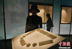 7月16日,四川成都,参观者观看青白玉镂雕云龙纹带板。当日,“青·韵——文物里的中国传统色彩美学”特展在成都金沙遗址博物馆启幕。此次展览汇聚了故宫博物院、湖南博物院等20余家文博机构的200余件/组青色系文物,尽显文物里的青色之美。中新社记者 王磊 摄