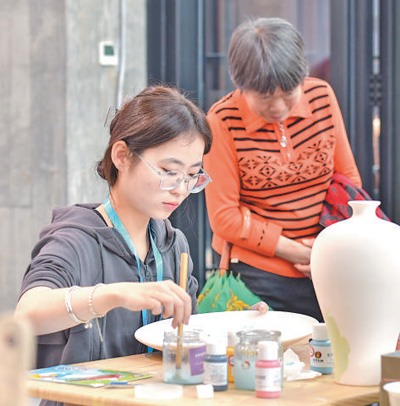 游客在红旗坊·文旅产业园内体验陶瓷彩绘。许华森摄(影像中国)