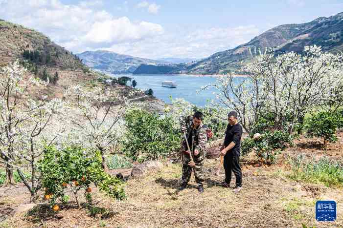 3月25日,在重庆市巫山县曲尺乡,村民在李树种植园内劳作。