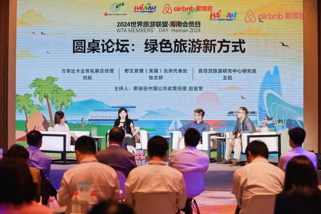 在圆桌论坛环节,野生救援(美国)北京代表处物种和海洋项目总监张文婷、首经贸旅游研究中心研究员王侃、万事达卡业务拓展总经理刘拓等人围绕“绿色旅游新方式”展开深入探讨。张文婷分享了公益大使马未都先生的非洲之行,通过生态友好型旅游领略地域文化和自然之美,感受人与自然和谐的关系,共同倡导濒危野生动物保护。她还介绍了厄瓜多尔银岛(Isla de la Plata)野生救援海洋项目地考察,银岛生物多样性丰富,吸引各国游客来到这里观察蓝脚鲣鸟等活动。良好管理生态旅游不仅为当地经济带来丰厚旅游收入,还促进了环境保护,让绿色旅游成为了切实可行的旅游业态。王侃强调可持续旅游在保护社区、文化及促进经济繁荣中的关键作用,以及实现各方利益平衡的必要性。刘拓介绍了万事达卡与公共部门合作推动可持续旅游的案例和经验,并分享了万事达卡协助各地政府提升入境游客支付便利度的相关工作情况。此次圆桌论坛强调政府、企业和公众在推动绿色旅游方面的重要作用,为绿色旅游实践提供具体案例和策略。