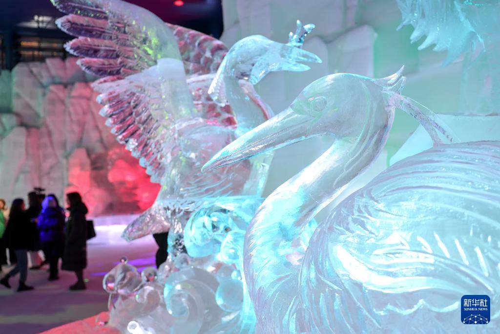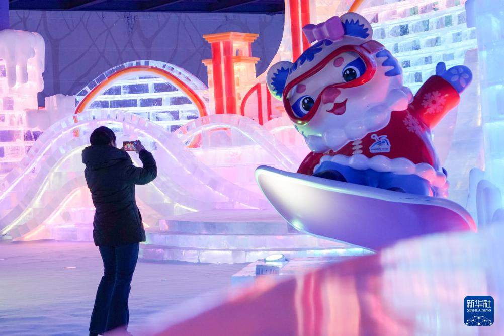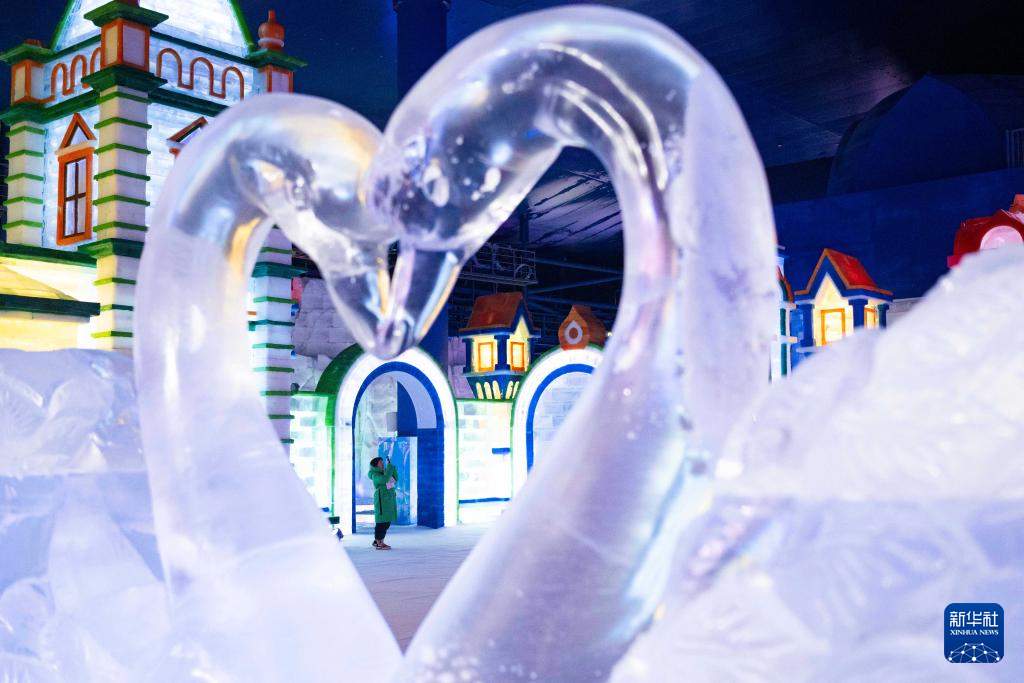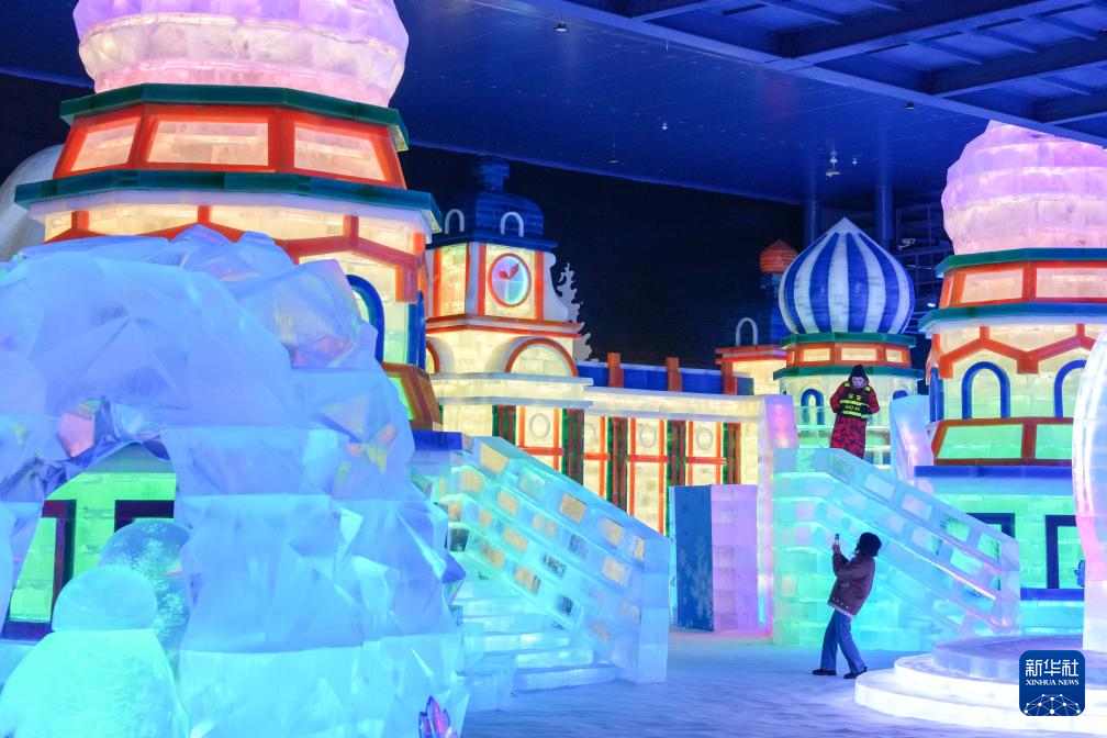 2月27日,人们在哈尔滨冰雪大世界梦幻冰雪馆内游玩。