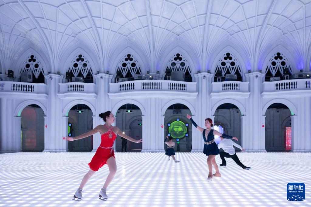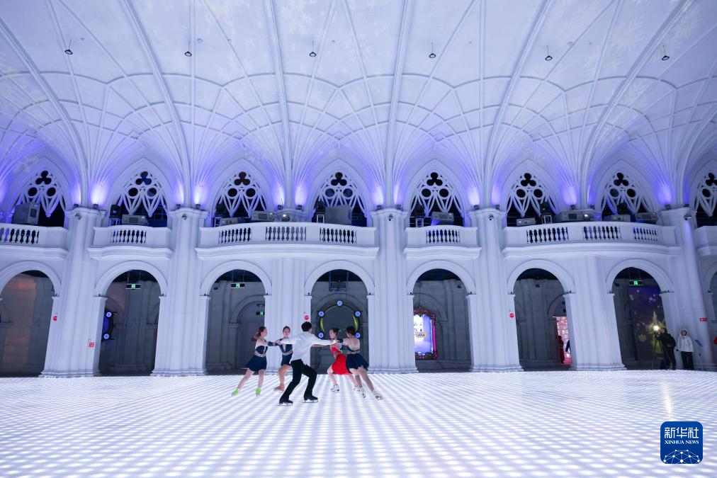 2月27日,在哈尔滨冰雪大世界梦幻冰雪馆,演职人员进行冰舞表演。