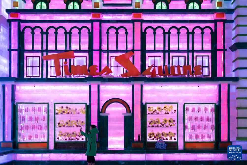 2月27日,游客在哈尔滨冰雪大世界梦幻冰雪馆内拍照。